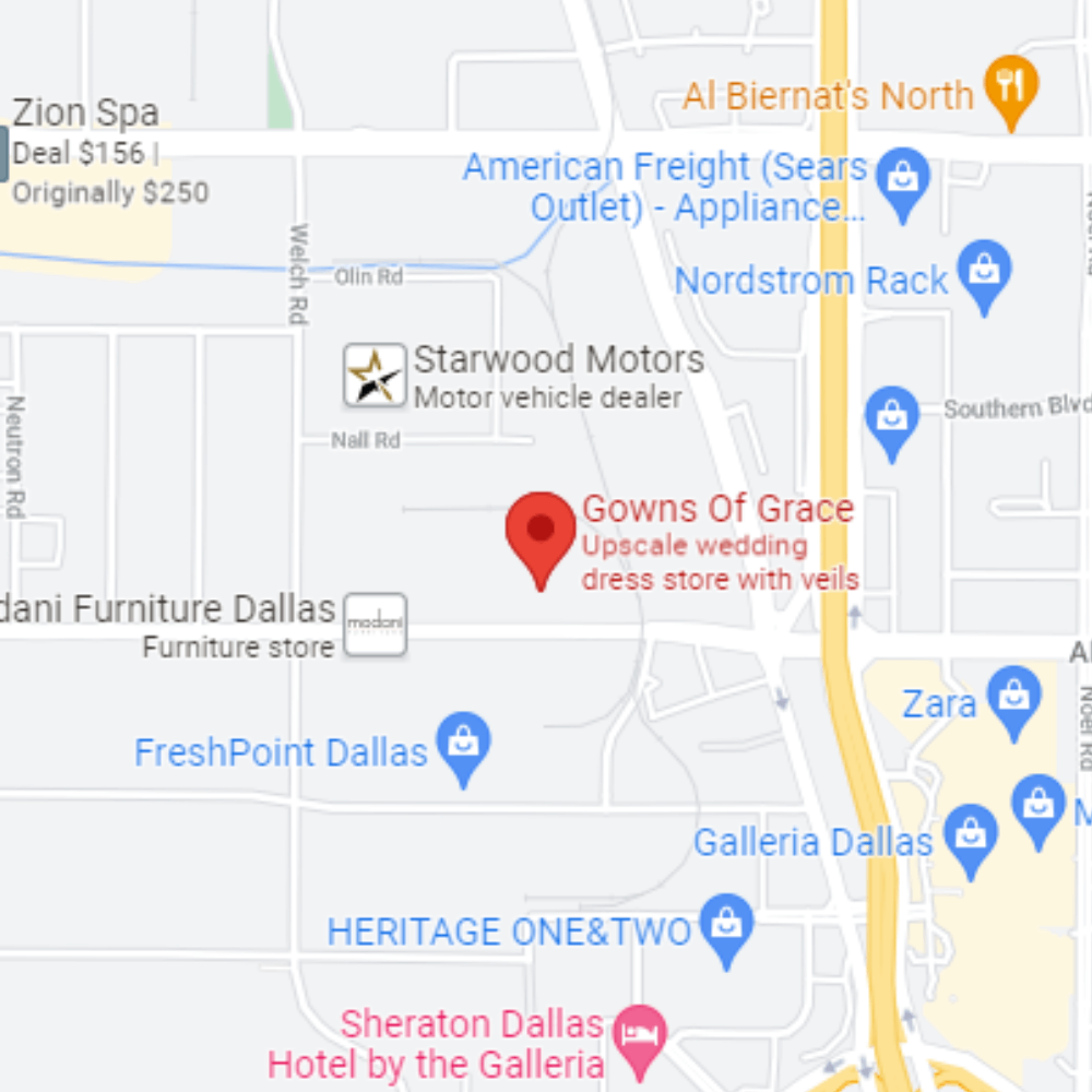 Gowns of Grace is an intimate bridal gown boutique nestled in the heart of Farmers Branch, Texas. We are family owned and operated since we opened December 2009.